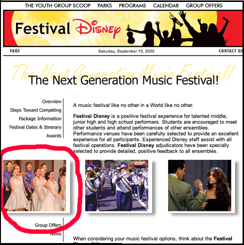 - October 24, 2006- Disney Entertainment continues to choose "Crescendo" as their group-of-choice in their mailings!